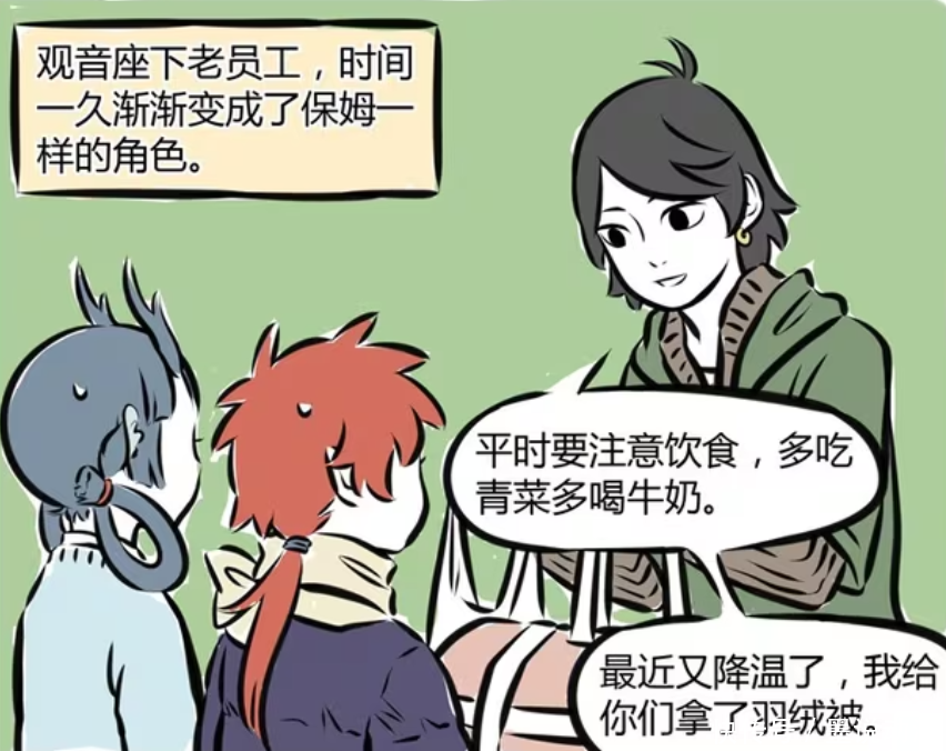 木吒还是观音坐下的老员工,不过时间久了,他也逐渐变成了保姆的角色。平时照顾龙女和红孩儿,还会叮嘱他们要注意饮食,多吃青菜多喝牛奶。天气变冷的时候,还会给龙女和红孩儿准备羽绒服。如果了解木吒,就知道红孩儿现在为何能够成为学霸,那都离不开木吒培养。