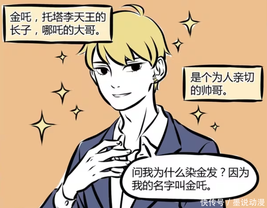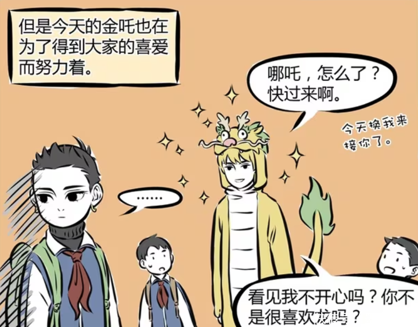 《非人哉》漫画版中,金吒虽然很帅,但是总被女生甩。虽说金吒对哪吒很热情,但热情到有点过度,所以哪吒对他很无语。至于木吒,更像是保姆,不管是对红孩儿、龙女来说股策略,还是对金吒、哪吒来说都是如此。